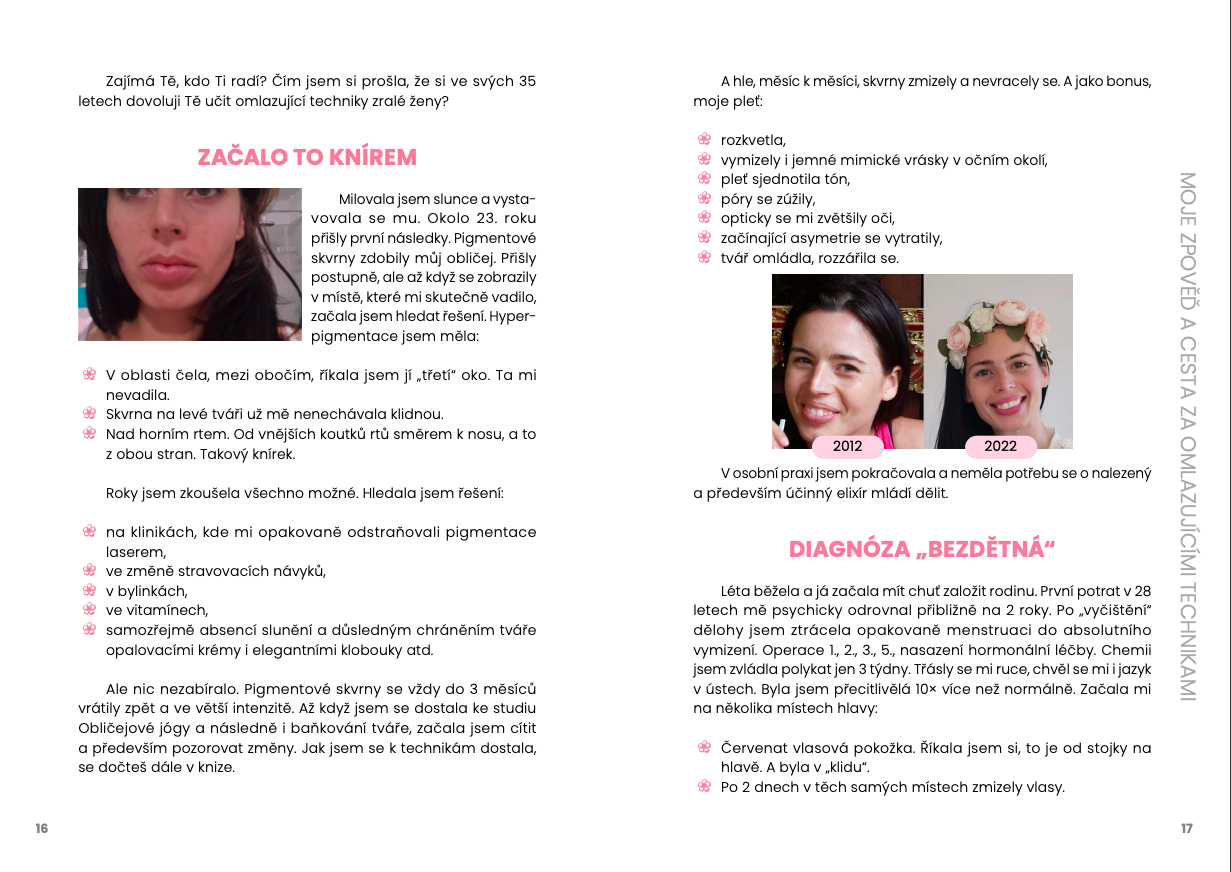 „Trápila mě spadnutá horní víčka. Kniha je boží. Nejvíce oceňuji jednostránku se všemi cviky. Cvičím každý den a po každém cviku prostě vnímám, jak pleť regeneruje.“